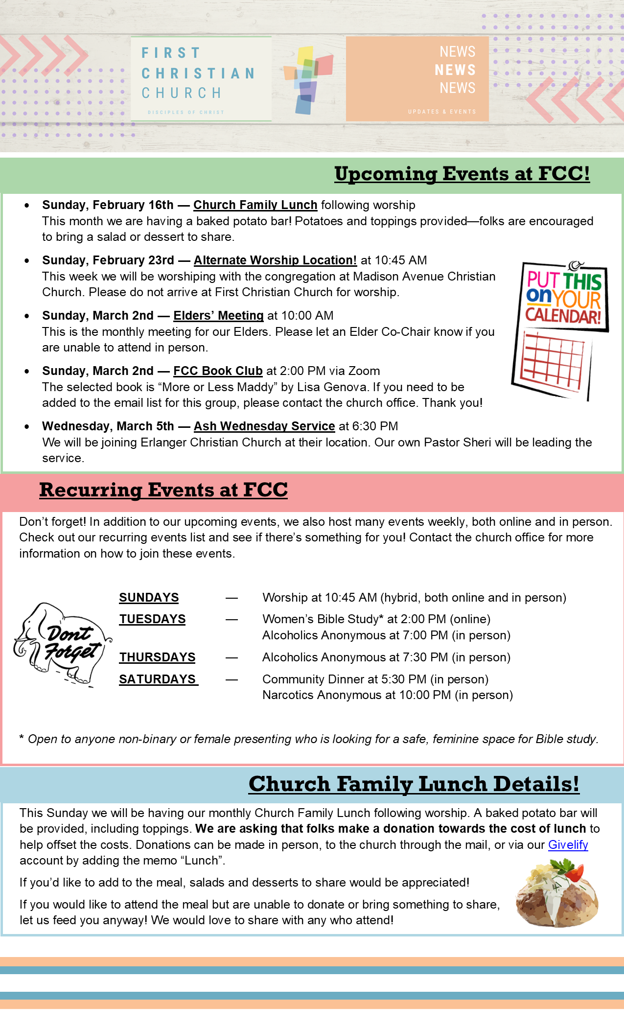 Posted byFirst Christian Church - Covington (Disciples of Christ)February 7, 2025February 7, 2025Posted inUncategorizedLeave a comment on Week of 02/07/2025