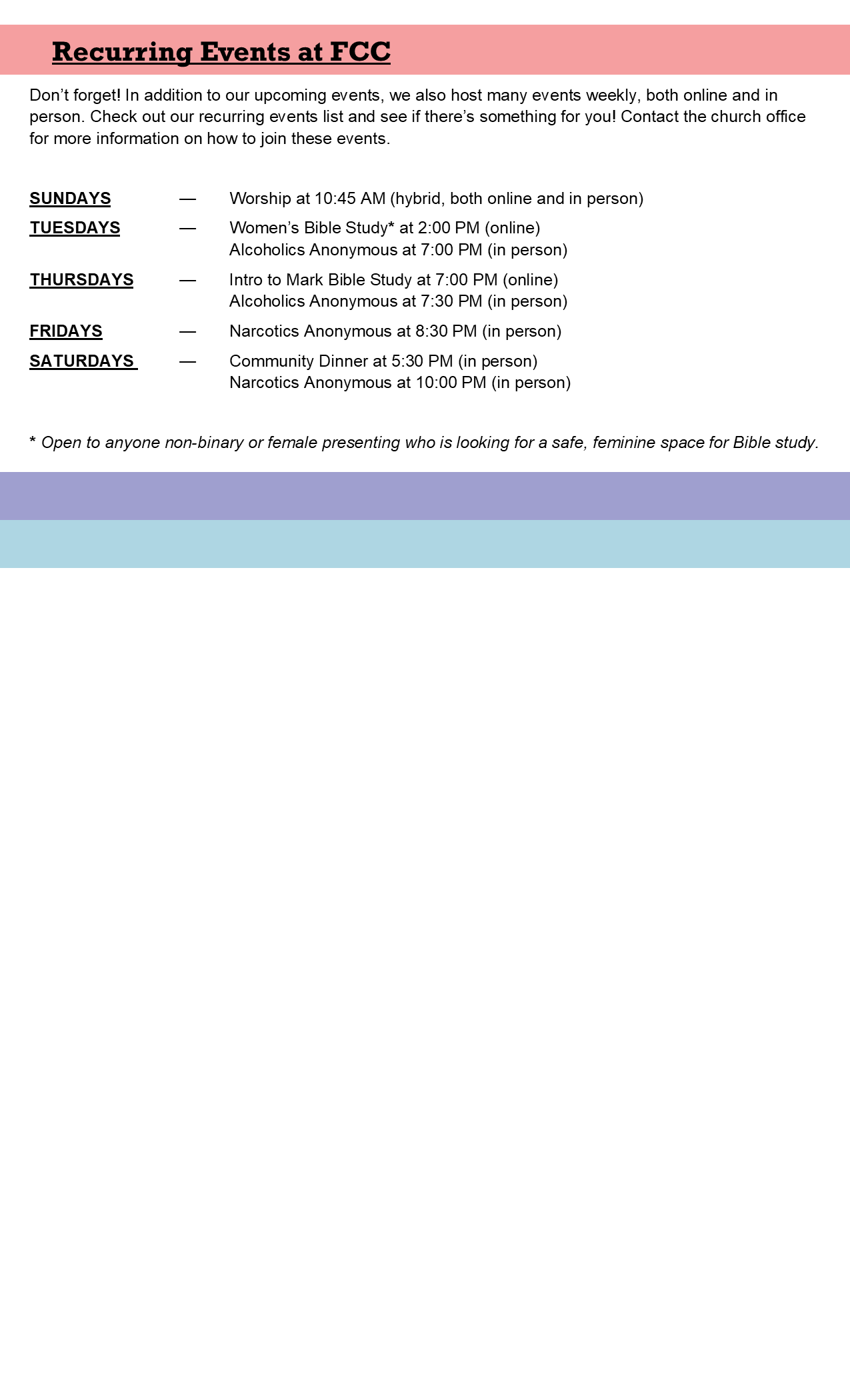Welcome Wholly. Love Authentically. Share God's Grace Abundantly.