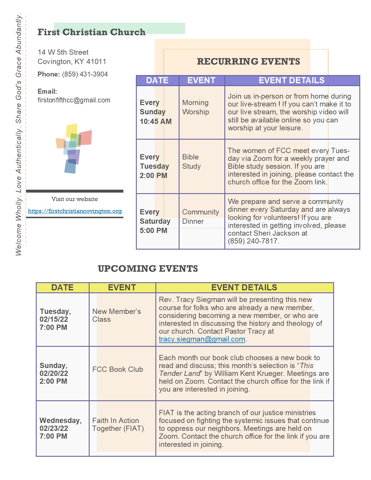Welcome Wholly. Love Authentically. Share God's Grace Abundantly.