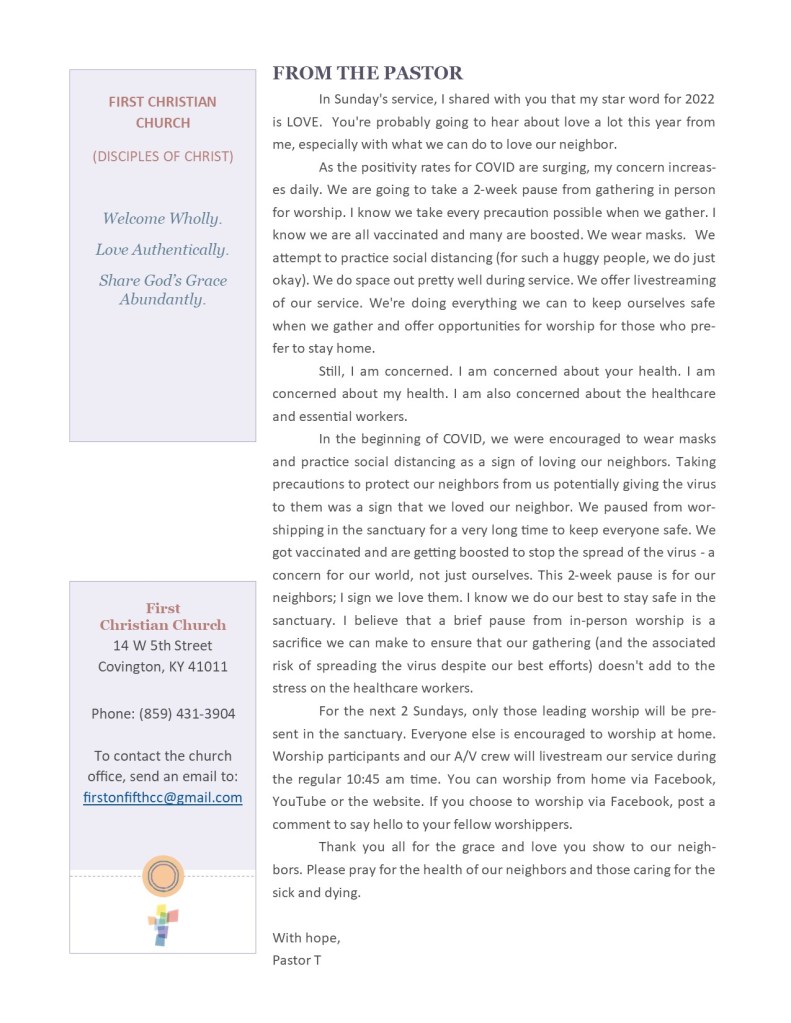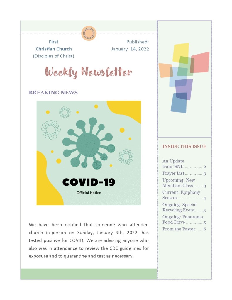 Newsletter for 01/14/22 For a better quality image and to be able to use links provided, download the PDF of this week’s newsletter using the button below. 20220114Download